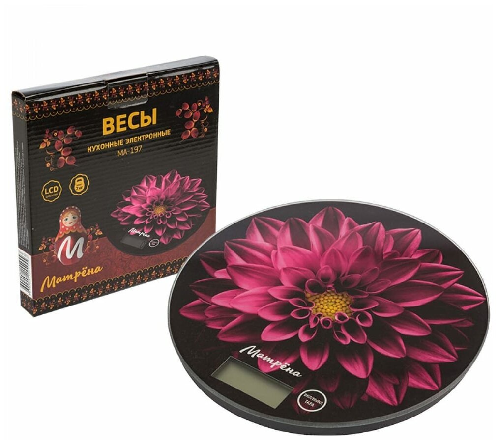 Весы кухонные электронные Матрёна МА-197 7 кг пурпурный цветок