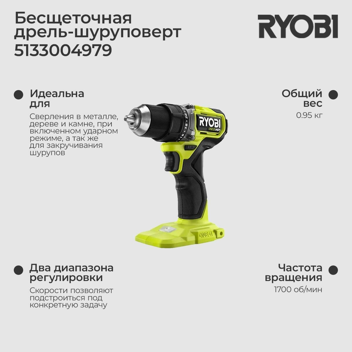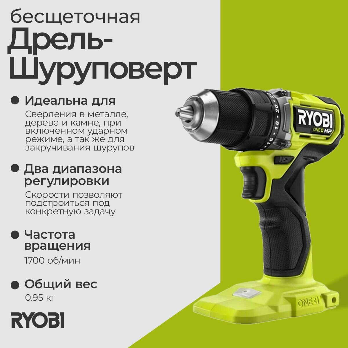 Купить Дрель-шуруповерт бесщеточная аккумуляторная Ryobi RDD18C-0 ONE+ HP