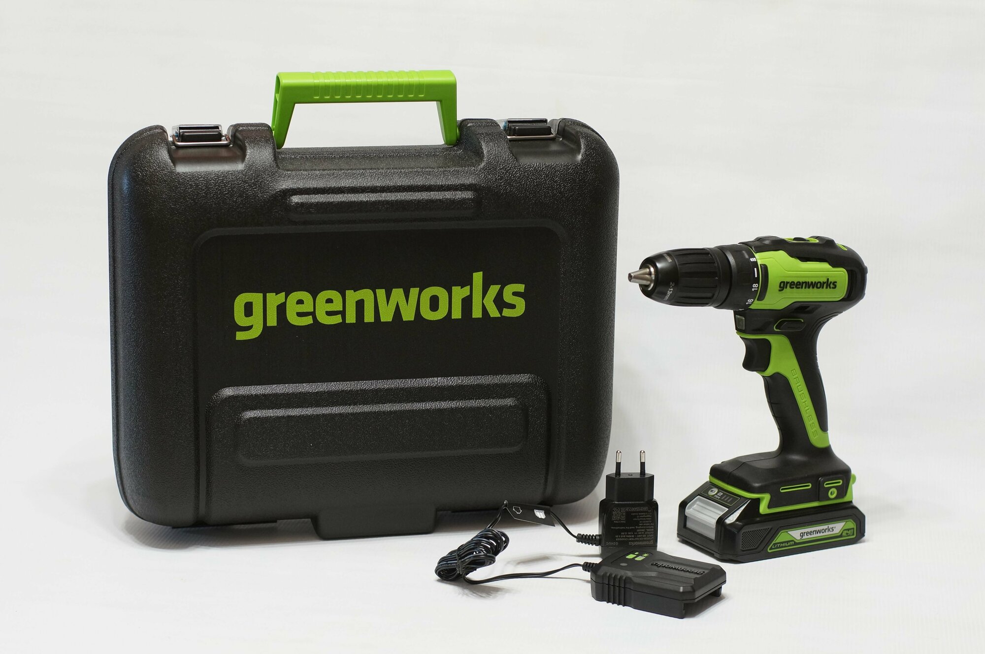 Дрель-шуруповерт аккумуляторная Greenworks Арт. 3704007UA, 24V, c 1хАКБ 2 Ач и ЗУ в кейсе