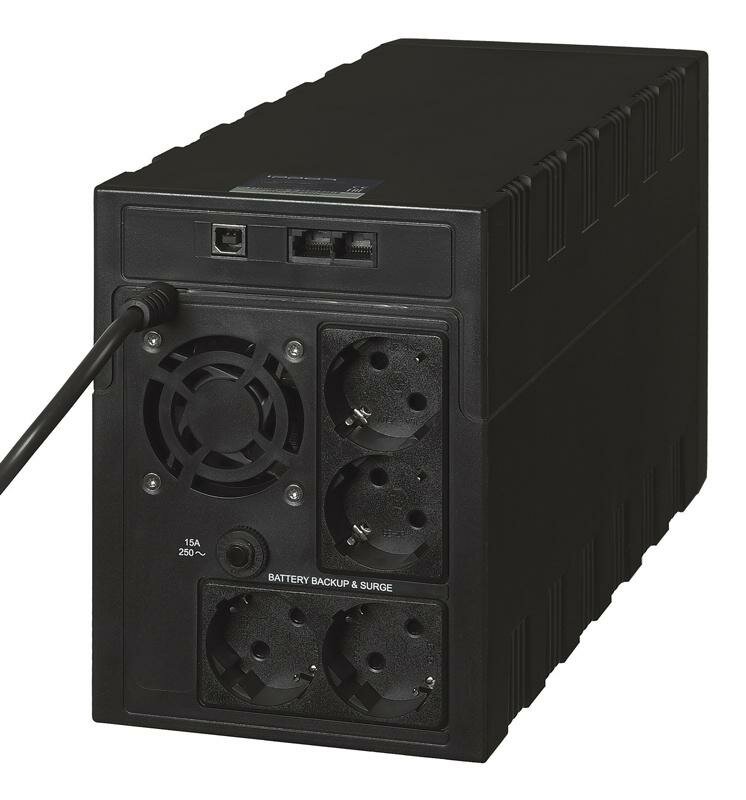 | Плюсы: | Ёмкий, мощный ИБП с возможностью подключения по УСБ для мониторинга. Имеется активное охлаждение, включающееся по датчик температуры. |