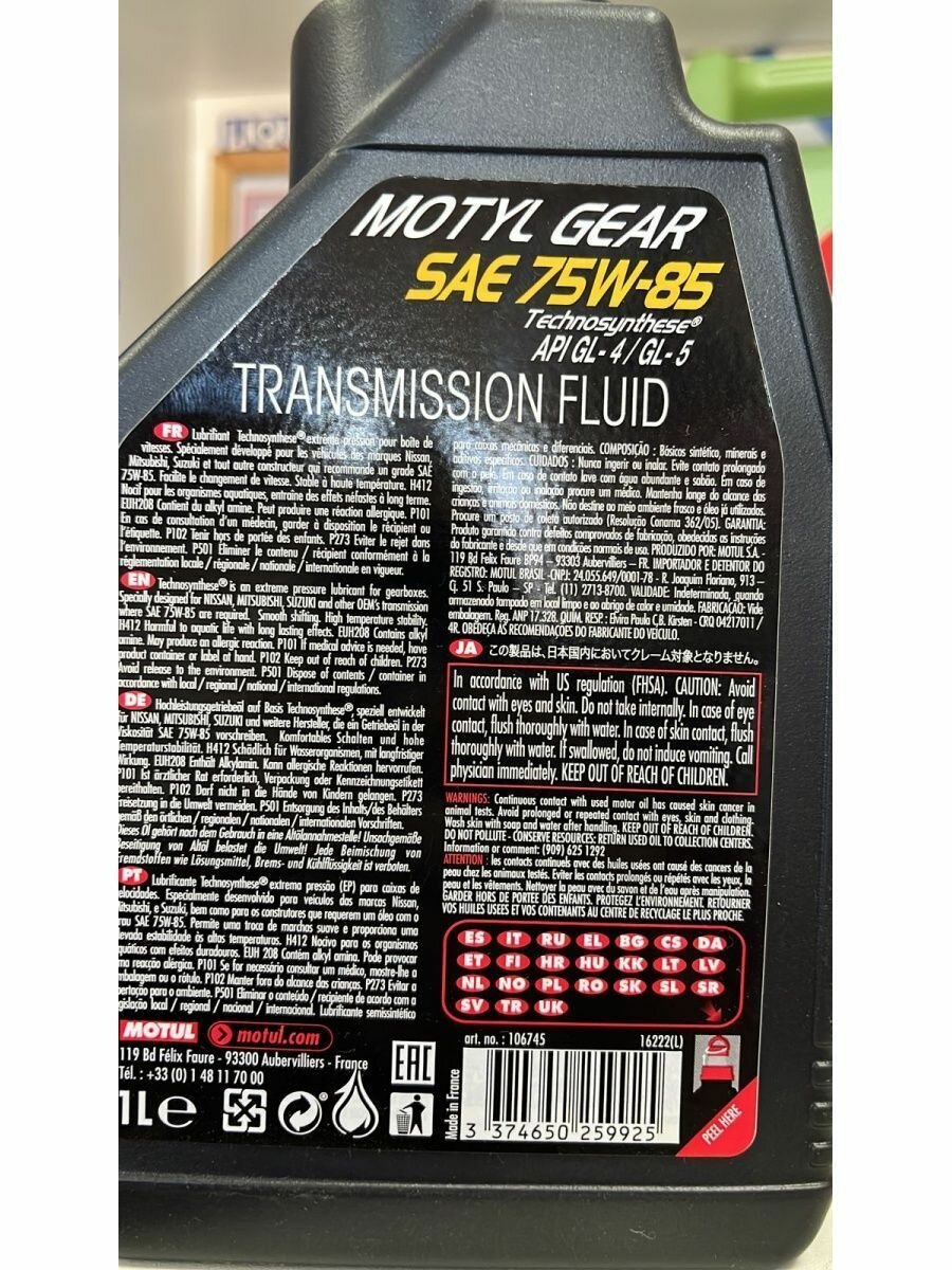 MOTUL 106745 Масло трансмиссионное MOTUL Motylgear 75W85 - 1 литр