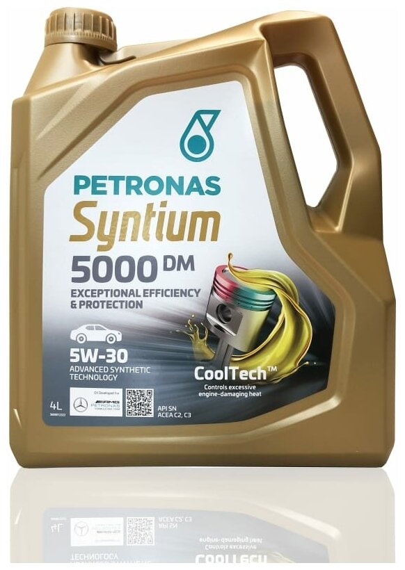 Моторное масло PETRONAS SYNTIUM 5000 DM 5W-30 Синтетическое 5л MB-Approval 229.51, MB-Approval 229.52, VW 505.00 / 505.01, BMW Longlife-04, API SN, ACEA C2 C3, 70644M12EU