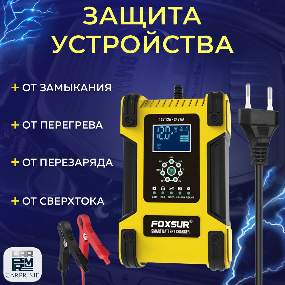 Зарядное устройство для АКБ FOXSUR 12V 12A / 24V 6A