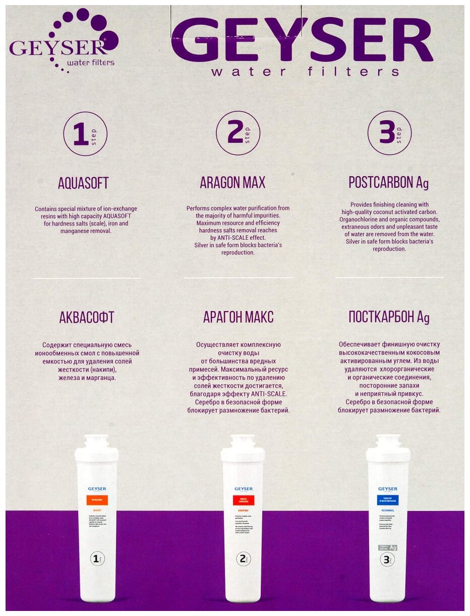 Набор картриджей Гейзер Смарт Макс для жёсткой воды 3 ступени