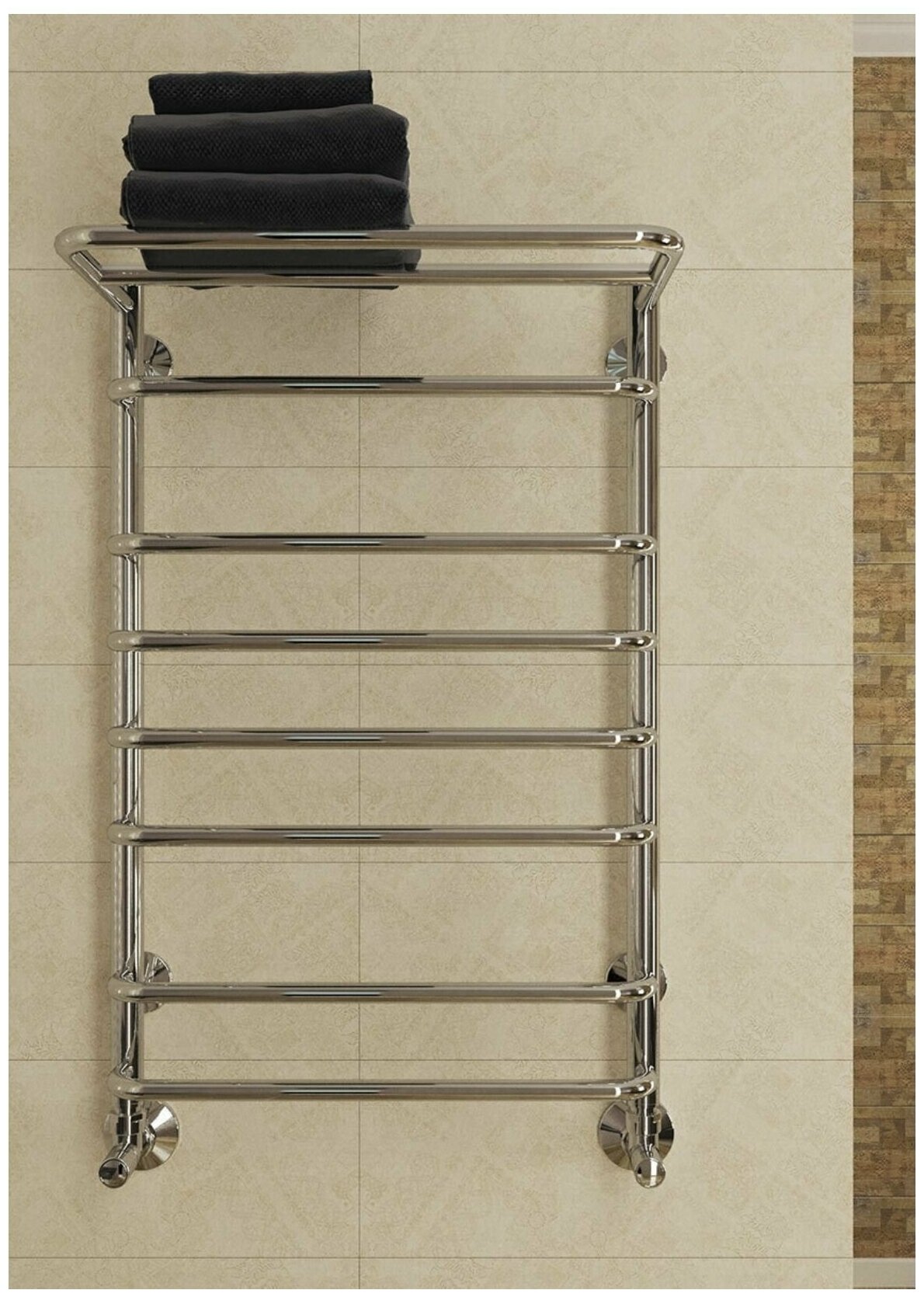 Водяной полотенцесушитель Terminus Полка П8 500x796 4670030723161 с полкой Хром