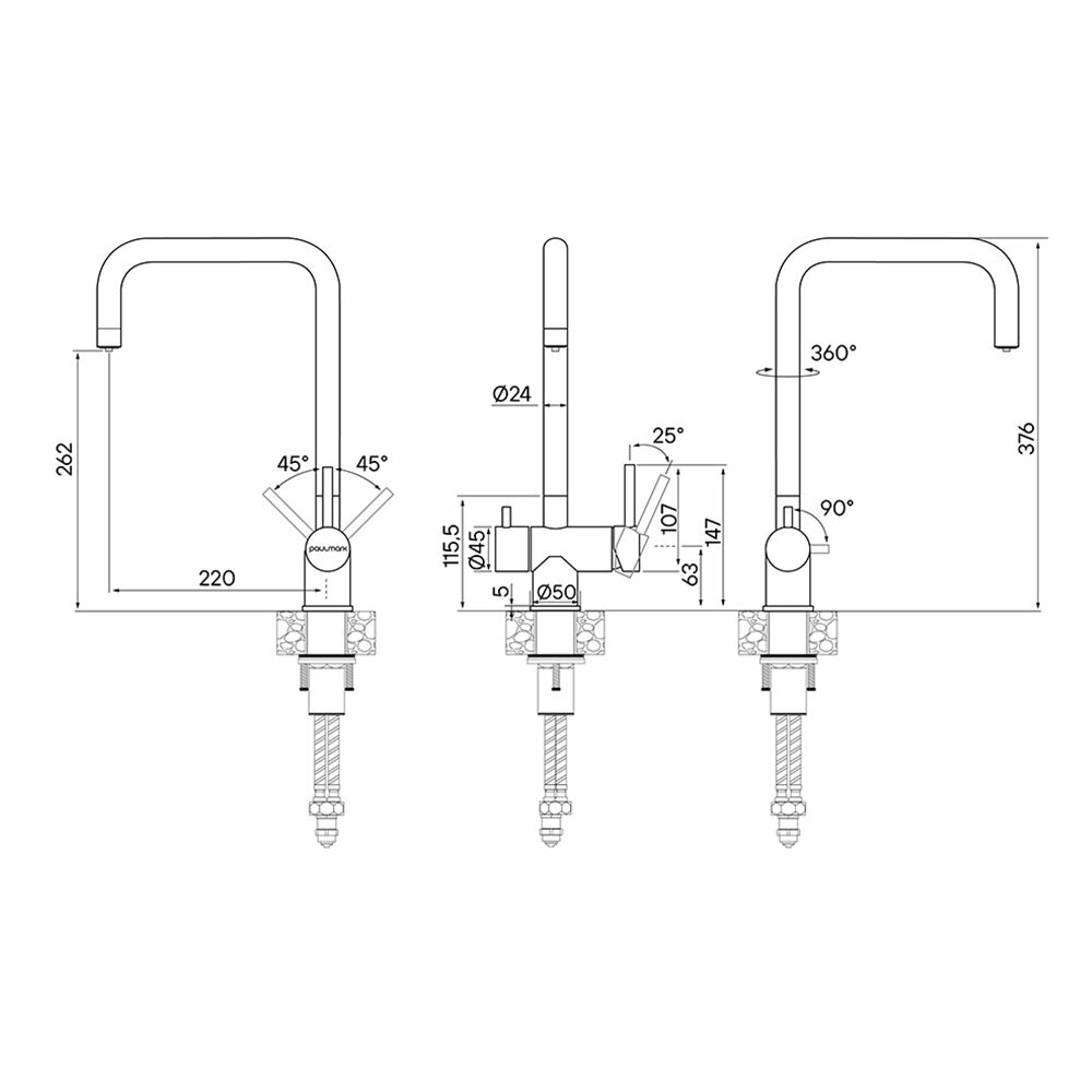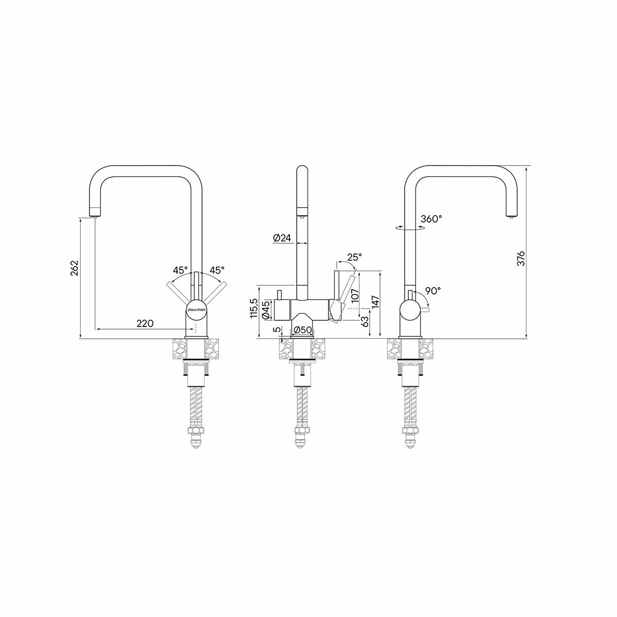 Смеситель для кухни Paulmark WETTER из нержавеющей стали AISI 304 с подключением к системе фильтрации воды, двурычажный, высокий и поворотный излив, на мойку, цвет нержавеющая сталь, We213030-SS