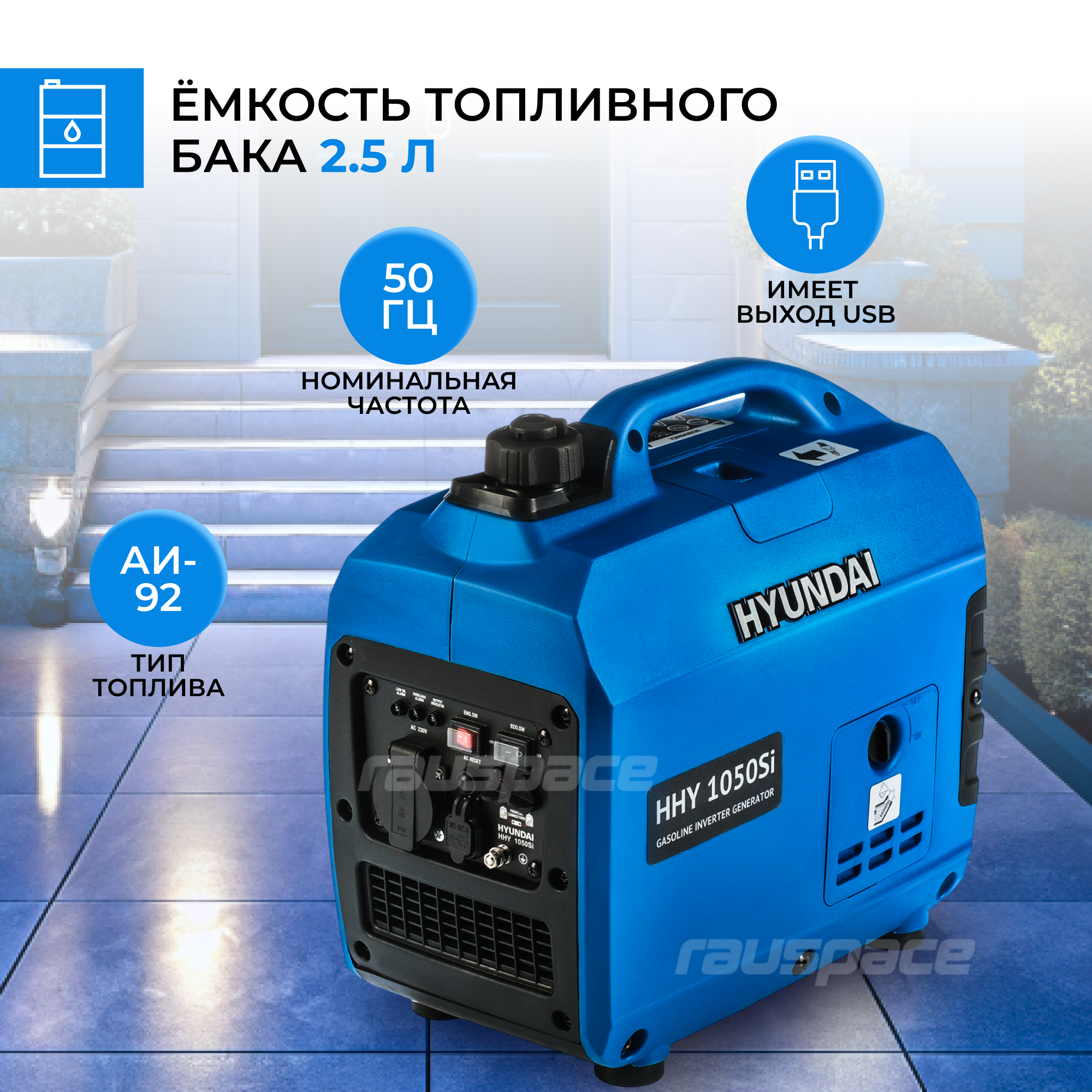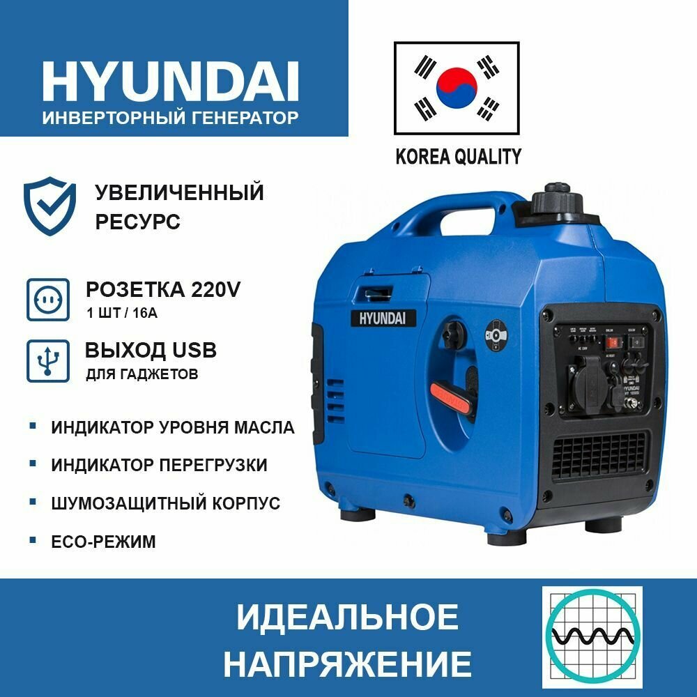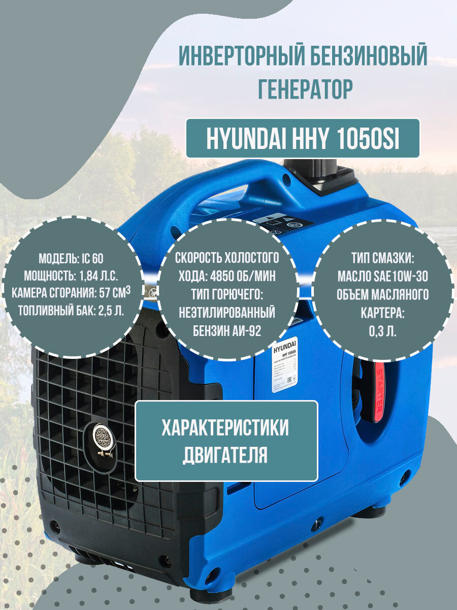 Генератор инверторный бензиновый Hyundai HHY 1050Si 1,2 кВт, бензогенератор, электростанция 12 кг