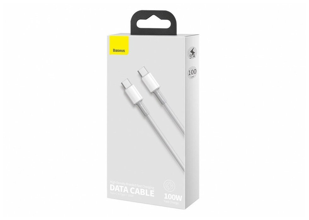 Кабель USB-C BASEUS High Density Braided, Type-C - Type-C, 5A, 1 м, белый