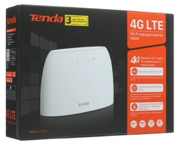 Ниже Вы можете прочитать отзывы на Беспроводной маршрутизатор TENDA 4G03 (802.11bgn, 2.4ГГц, 300Мбит/с, 1xLAN 10/100Мбит/с, 1xLAN 10/100/1000Мбит/с, LTE) (4G03), ознакомится с подробными характеристиками, посмотреть интересные обзоры и фотографии на Беспроводной маршрутизатор TENDA 4G03 (802.11bgn, 2.4ГГц, 300Мбит/с, 1xLAN 10/100Мбит/с, 1xLAN 10/100/1000Мбит/с, LTE) (4G03).