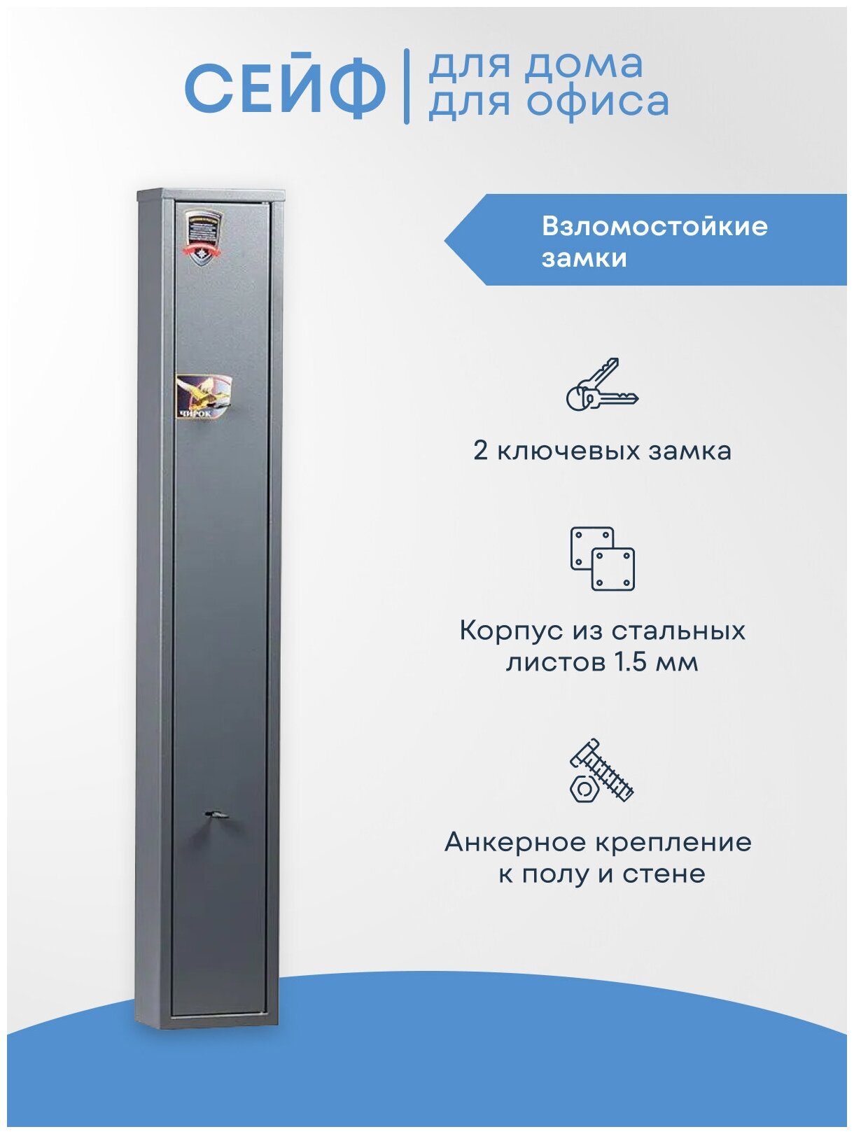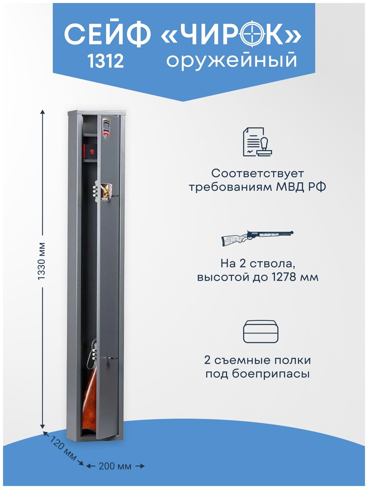 Оружейный сейф Чирок 1312 на 2 ствола. Высота ружья - 1278 мм. 1330х200х120 мм. Ключевой.