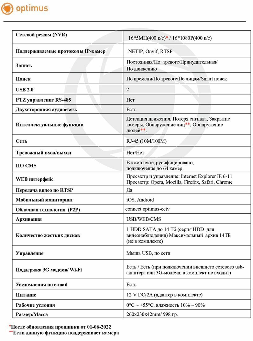 | Максимальное количество IP камер | 4 шт. |