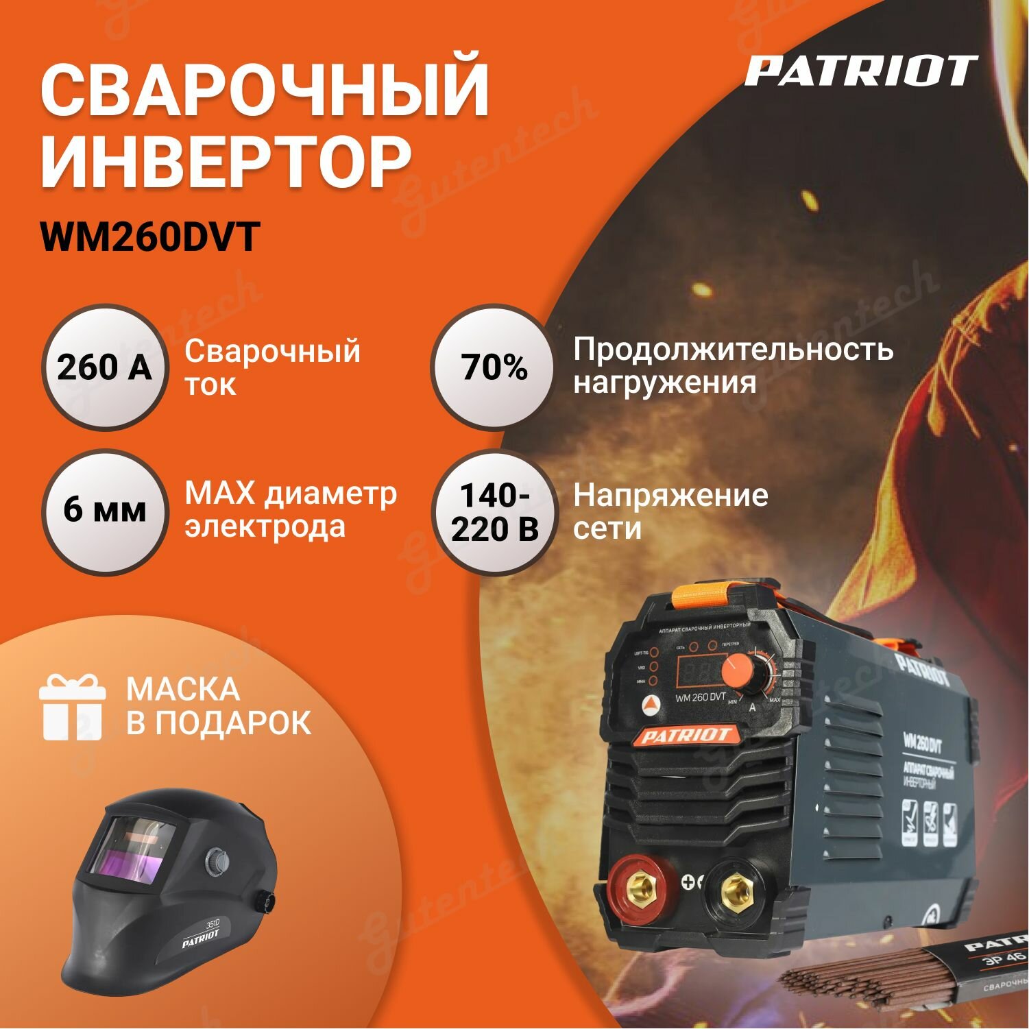 СохранитьСварочный инвертор Patriot WM260DVT MMA с подарком Маска Patriot 351D интересное: