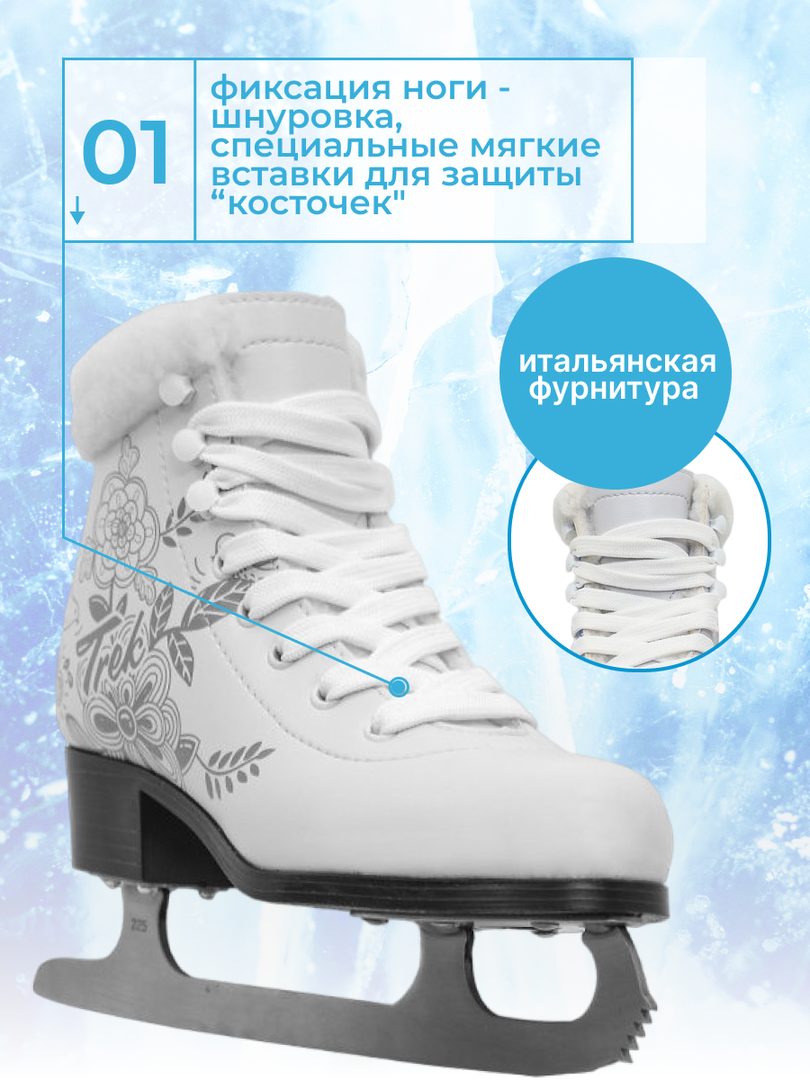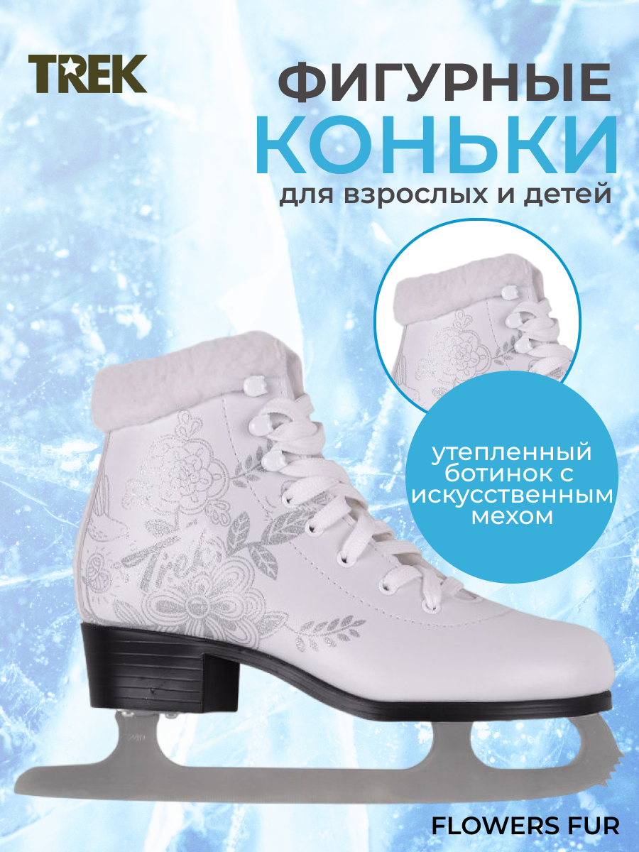 Коньки фигурные TREK Flowers Fur, размер: RU34;EU35;CM21,5