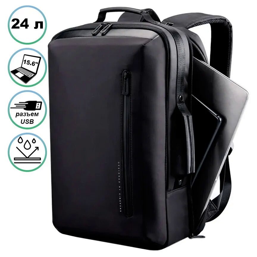 Рюкзак-сумка мужской городской дорожный вместительный 24л для ноутбука 15.6 Kingsons KS3223W Черный водонепроницаемый с USB для взрослых и подростков