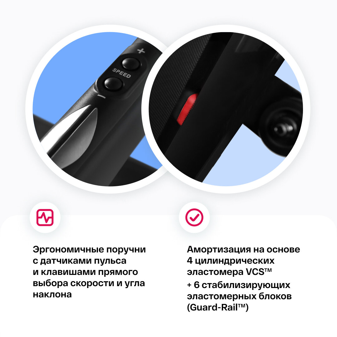 | Плюсы: | Бегаю больше месяца почти каждый день. Демпфер хороший - колени/спина после бега не болят. Автоматическое изменение угла наклона позволяет без проблем увеличивать нагрузку. Не шатается, не болтается. Пробовал бегать на макс. Скорости 16км/ч дорожки - норм, никаких качаний и вибраций. Ширины дорожки хватает. Собирается легко. |