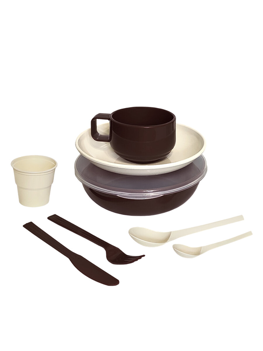 Купить Набор пластиковой, многоразовой посуды SOLARIS на 1 персону «Командировочный» ванильно-шоколадный