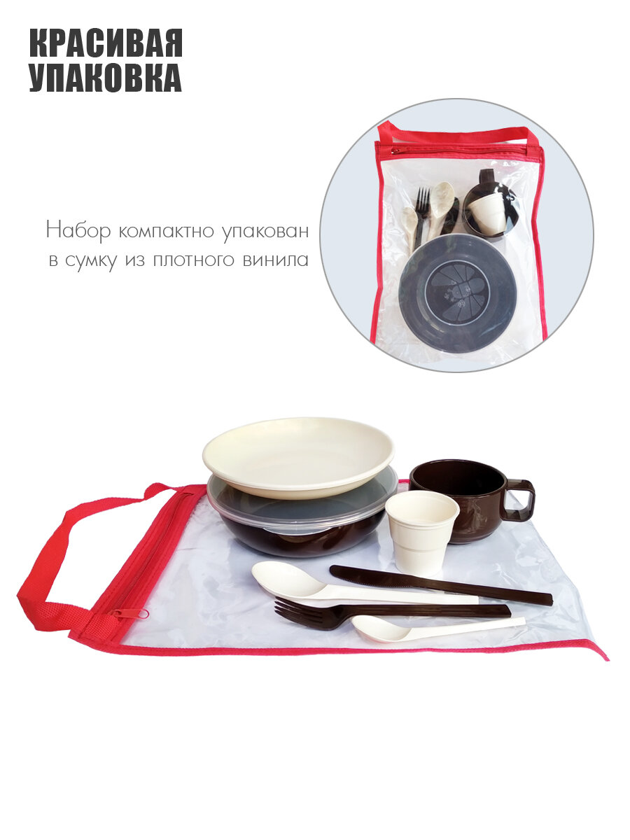 Набор пластиковой, многоразовой посуды SOLARIS на 1 персону «Командировочный» ванильно-шоколадный интересное: