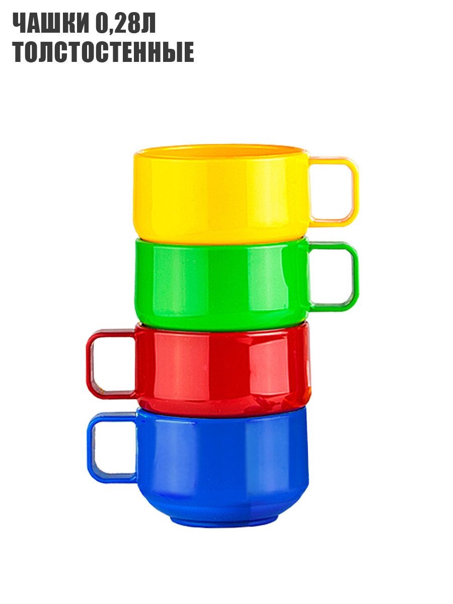 | Комплектация | 4 шт. - тарелка 180мм; 4 шт. - чашка 0,28л; 4 шт. - стакан 0,1л с мерными делениями; 4 шт. - вилка; 4 шт. - ложка столовая; 4 шт. - нож; 4 шт. - ложка чайная; 2 шт. - солонка/перечница. |