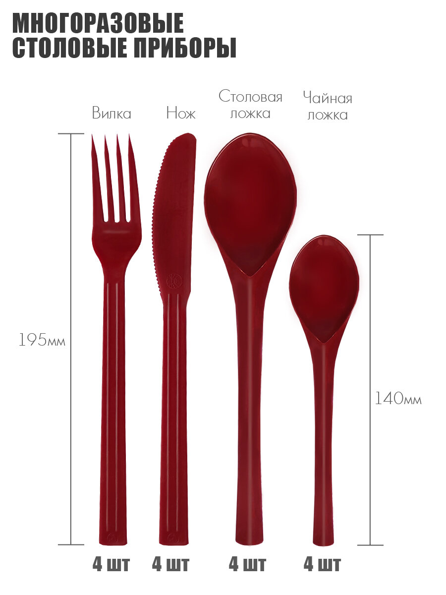 Набор пластиковой, многоразовой посуды SOLARIS на 4 персоны / тарелки / чашки / стопки / приборы интересное: