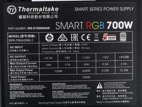Ниже Вы можете прочитать отзывы на Блок питания Thermaltake Smart RGB 700, 700Вт, 120мм, черный, retail [ps-spr-0700nhsawe-1], ознакомится с подробными характеристиками, посмотреть интересные обзоры и фотографии на Блок питания Thermaltake Smart RGB 700, 700Вт, 120мм, черный, retail [ps-spr-0700nhsawe-1].
