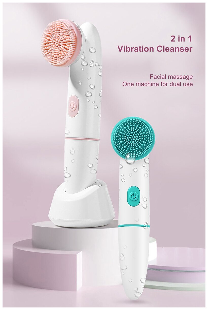 Электрическая силиконовая щетка для чистки лица вибро-массажер 2 в 1 Sonic Facial cleansing Brush wl 0156 розовая интересное: