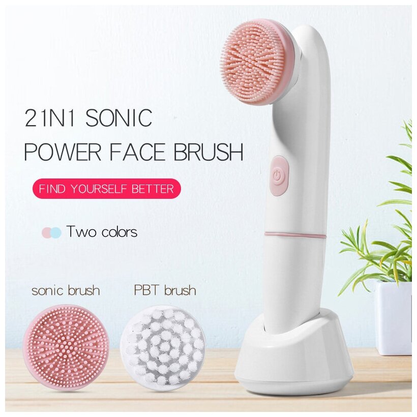 Купить Электрическая силиконовая щетка для чистки лица вибро-массажер 2 в 1 Sonic Facial cleansing Brush wl 0156 розовая