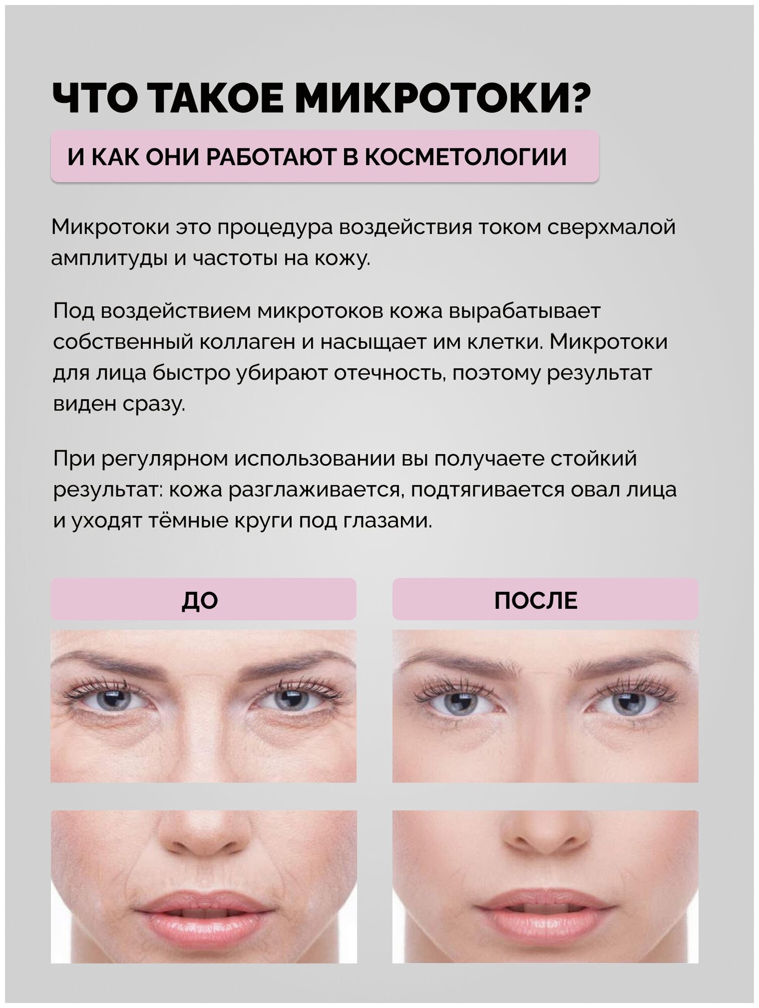 | Эффект | улучшение кровоснабжения / ровный цвет лица / лифтинг / повышение упругости кожи / разглаживание морщин / уменьшение отеков |