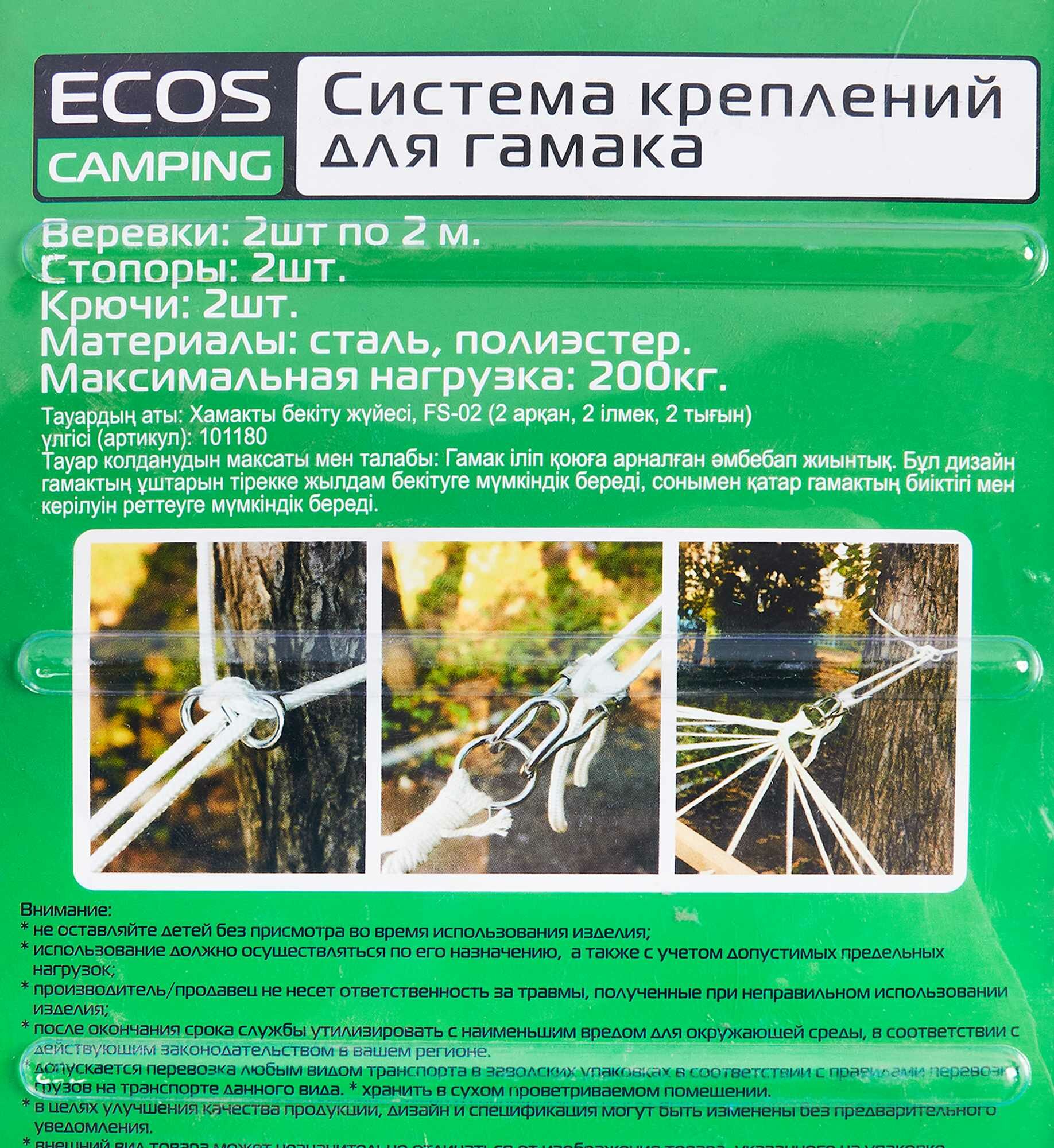 Система креплений для гамака Ecos FS-02 (2 веревки, 2 крючка, 2 стопора)