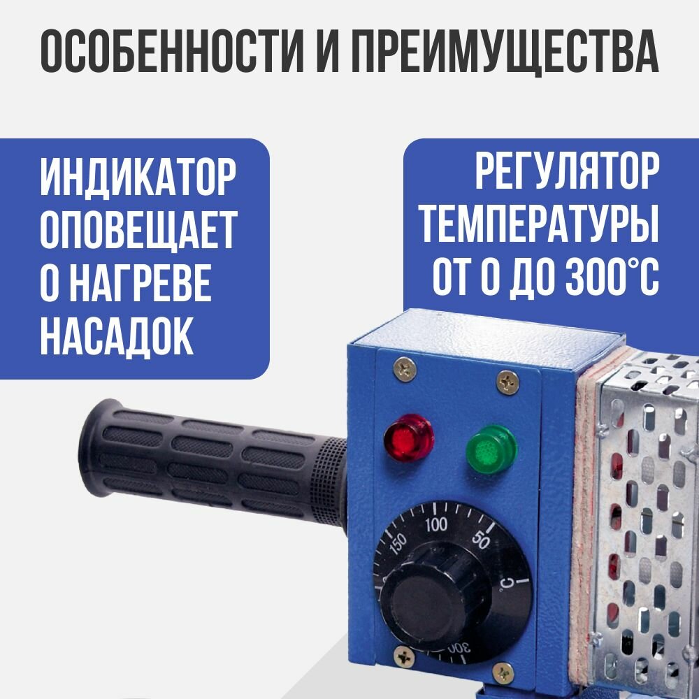 Аппарат для сварки полипропиленовых труб диолд АСПТ-2 (800Вт) / аппарат для соединения пластиковых и ПВХ труб, 6 насадок