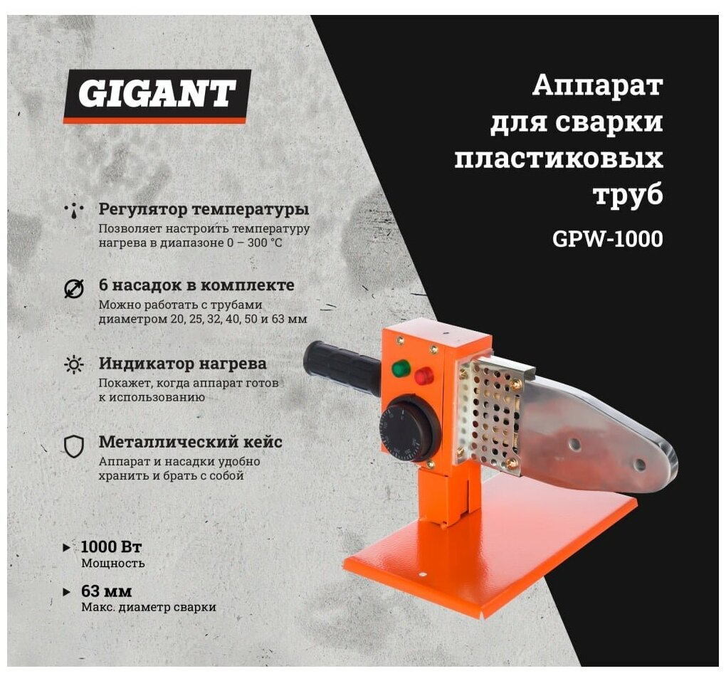 Аппарат для сварки пластиковых труб Gigant GPW-1000 интересное:
