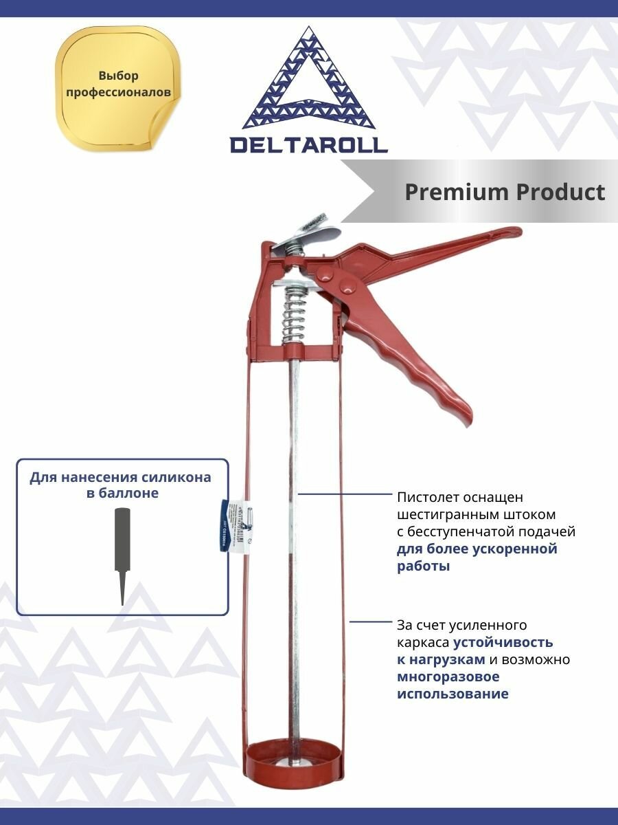 Пистолет для силикона с усиленным каркасом DeltaRoll 310 мл CG150016 интересное: