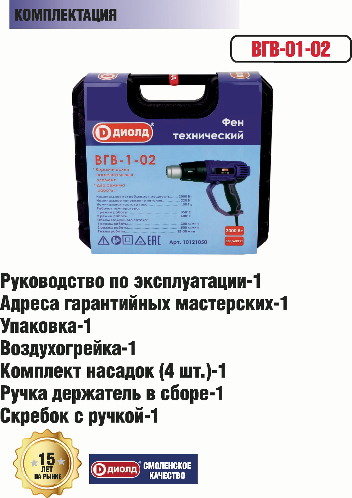 Купить Строительный фен диолд ВГВ-1-02, 2000 Вт