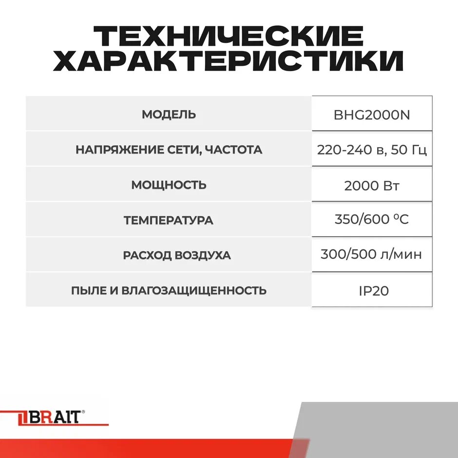 Фен строительный BRAIT BHG2000N, 2000 Вт