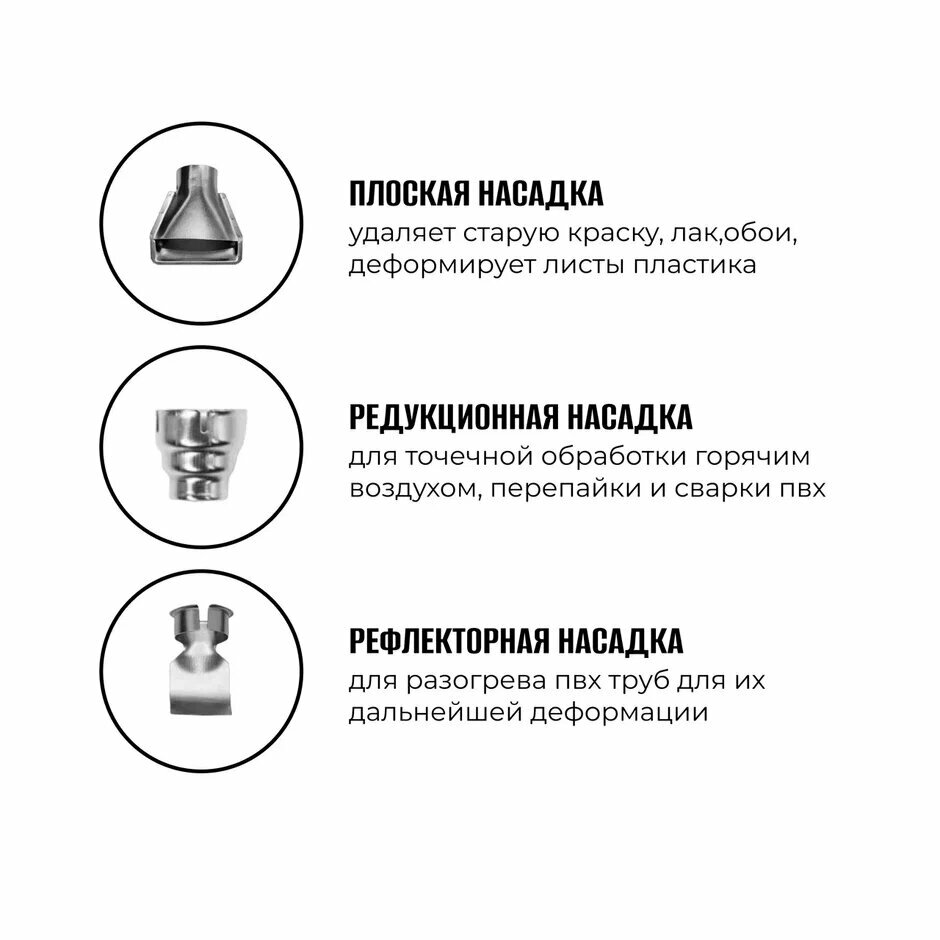 Фен технический BRAIT BHG2000N 2000 Вт, макс. темп. 485 С, 2 скорости, 3 насадки