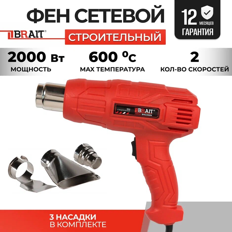 Купить Строительный фен BRAIT BHG2000N, 2000 Вт красный