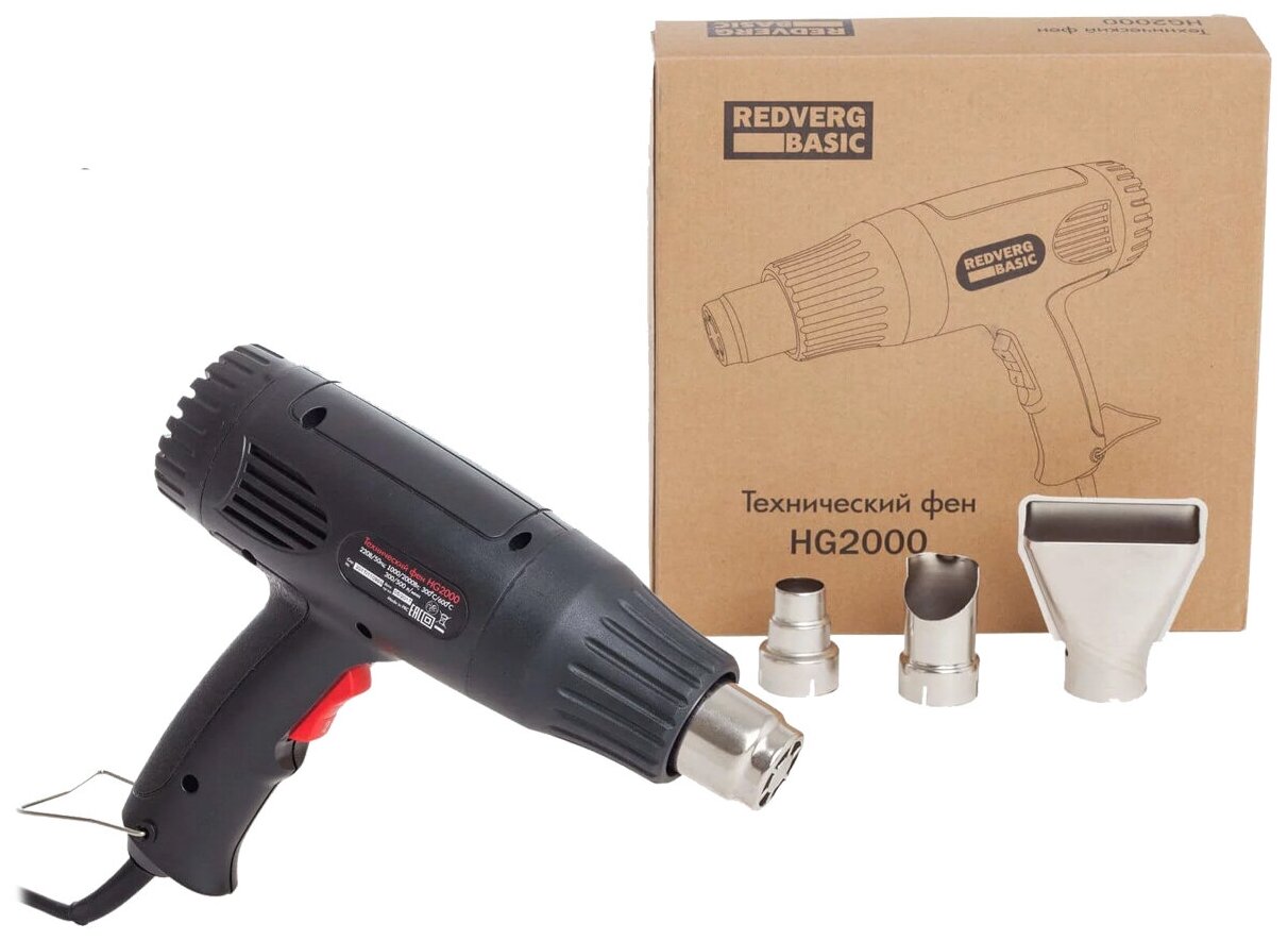 Фен RedVerg Basic HG2000 (2000Вт, 300/600C, 300/500л/мин) 0.7кг +3 насадки