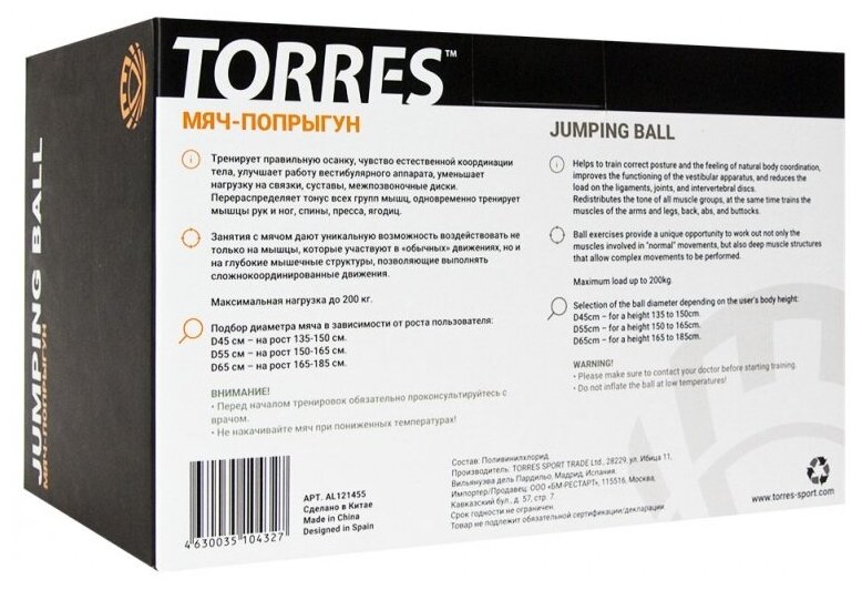 Ниже Вы можете прочитать отзывы на Мяч-попрыгун TORRES , арт.AL121455, с ручками, диам. 55 см, эласт. ПВХ, с насосом, синий, ознакомится с подробными характеристиками, посмотреть интересные обзоры и фотографии на Мяч-попрыгун TORRES , арт.AL121455, с ручками, диам. 55 см, эласт. ПВХ, с насосом, синий.