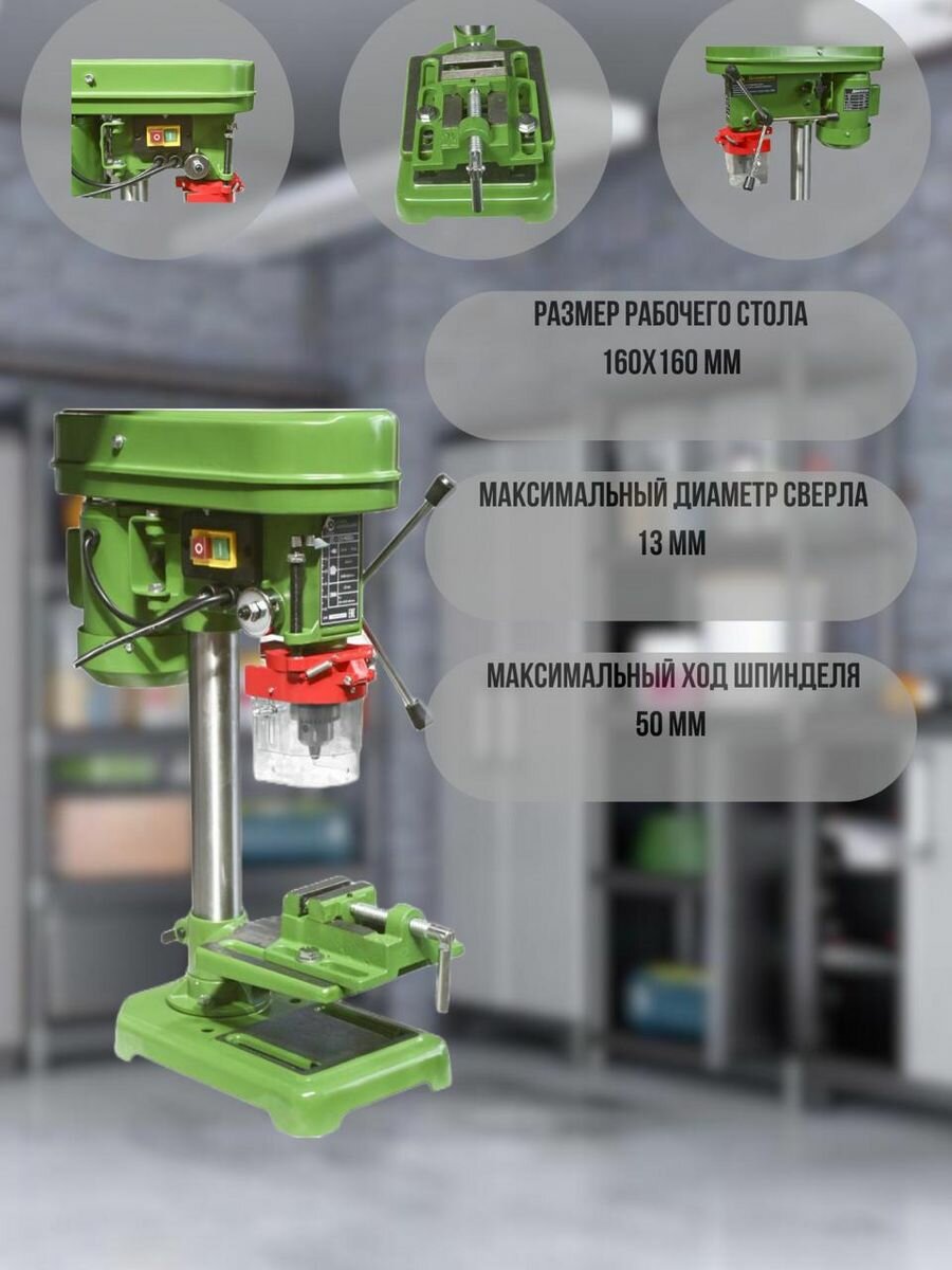 | Минусы: | Регулировка глубины сверления гайкой неудобная и похоже сбивается. Рабочий стол может прогибаться при серъезных нагрузках |