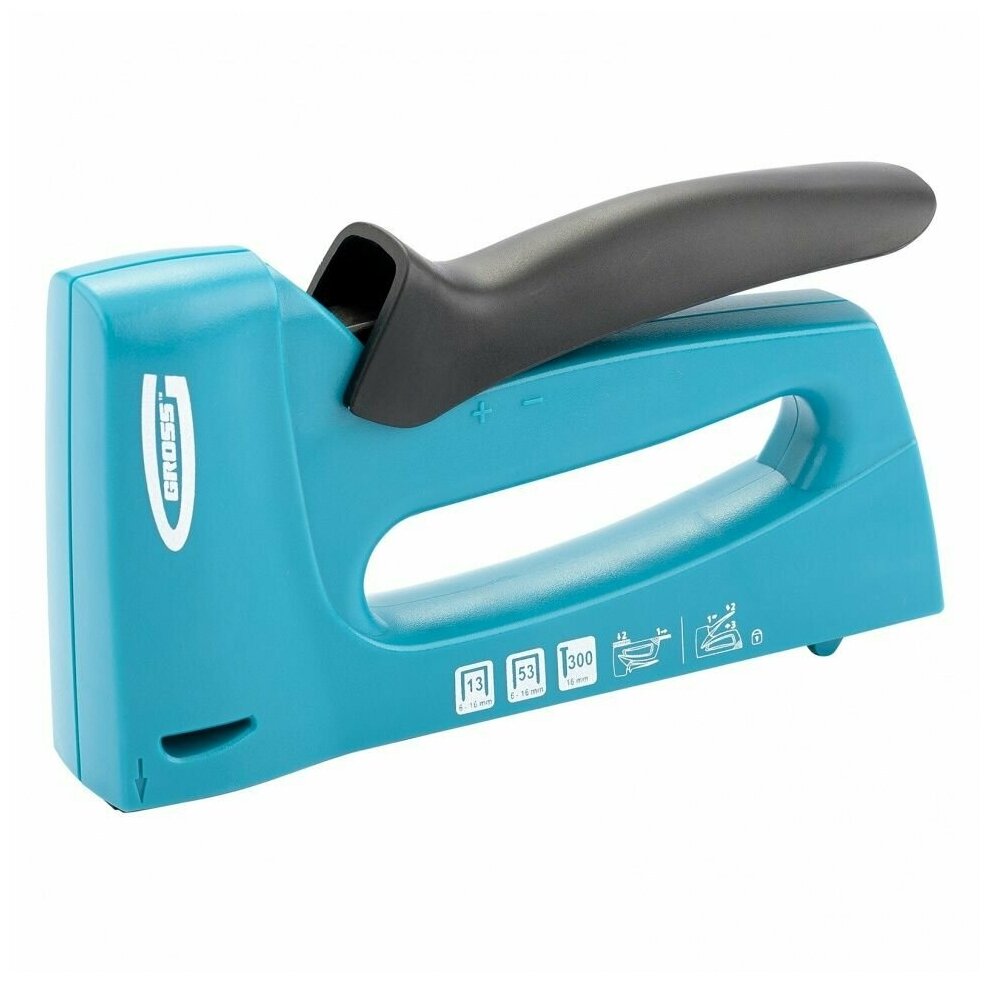 Степлер мебельный, пластиковый корпус, регулировка удара, тип скобы: 13, 53, 300, 6-16 мм Gross