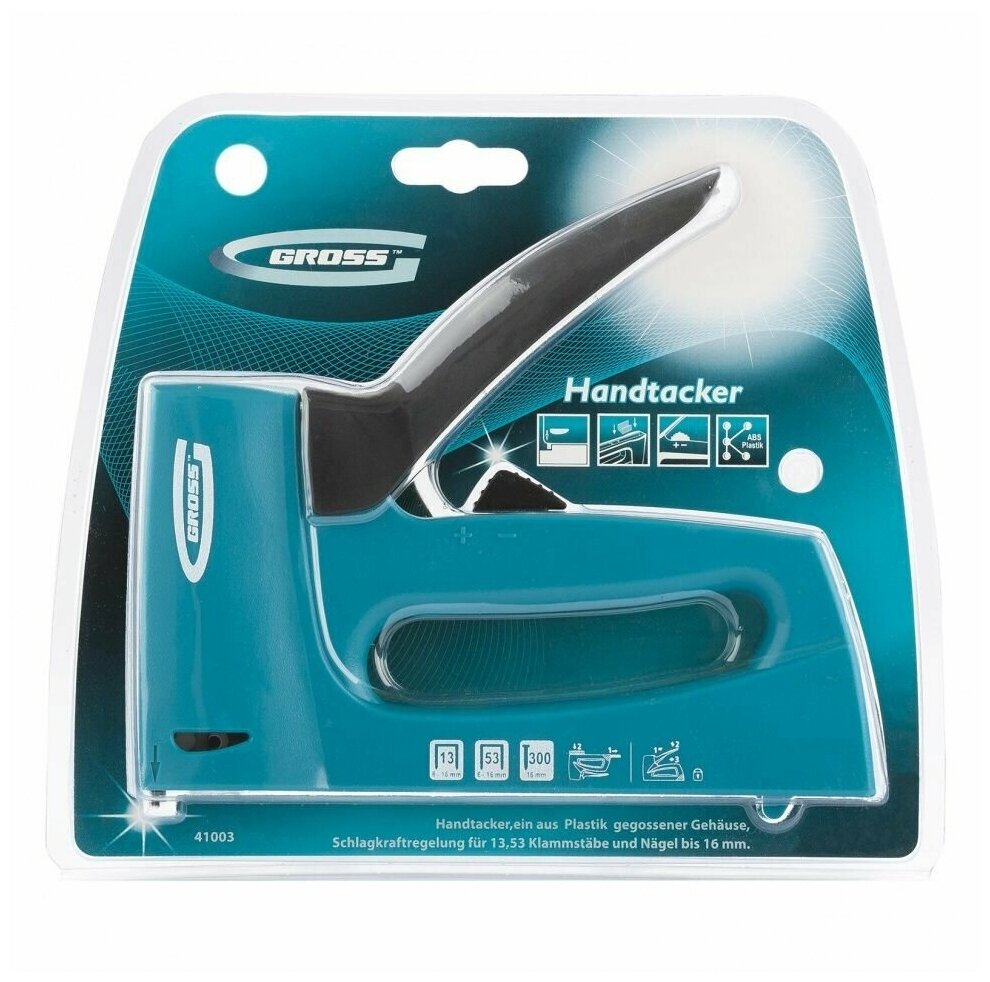Строительный степлер Gross, тип 13, 53, 300 под скобы 6 - 16 мм, пластиковый корпус