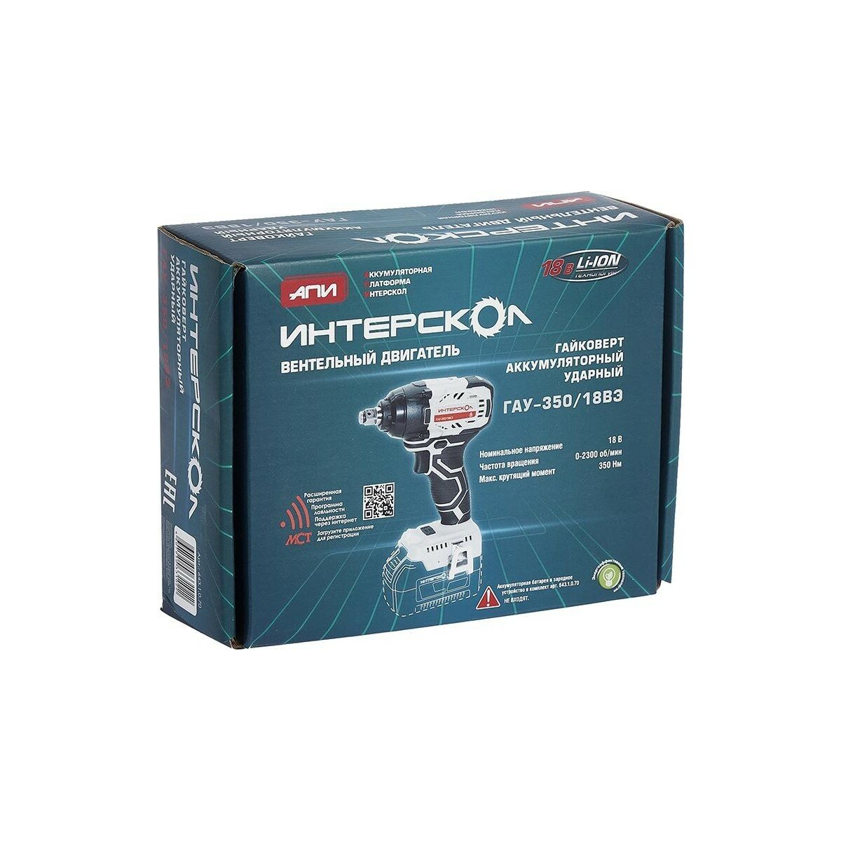 Гайковерт аккумуляторный ударный ИНТЕРСКОЛ ГАУ-350/18ВЭ бесщеточный Li-ion АПИ (картон, без аккум. и ЗУ)