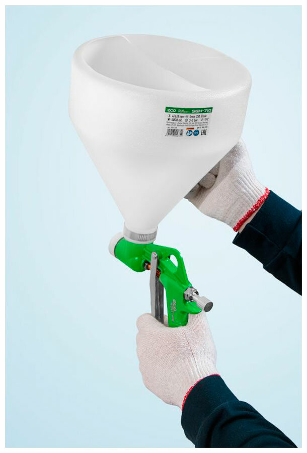 Краскораспылитель Eco SGH-710 (HP, сопло ф 4, 6, 8 мм, вернхий бак 5000 мл), для нанесения штукатурки, и шпатлевки