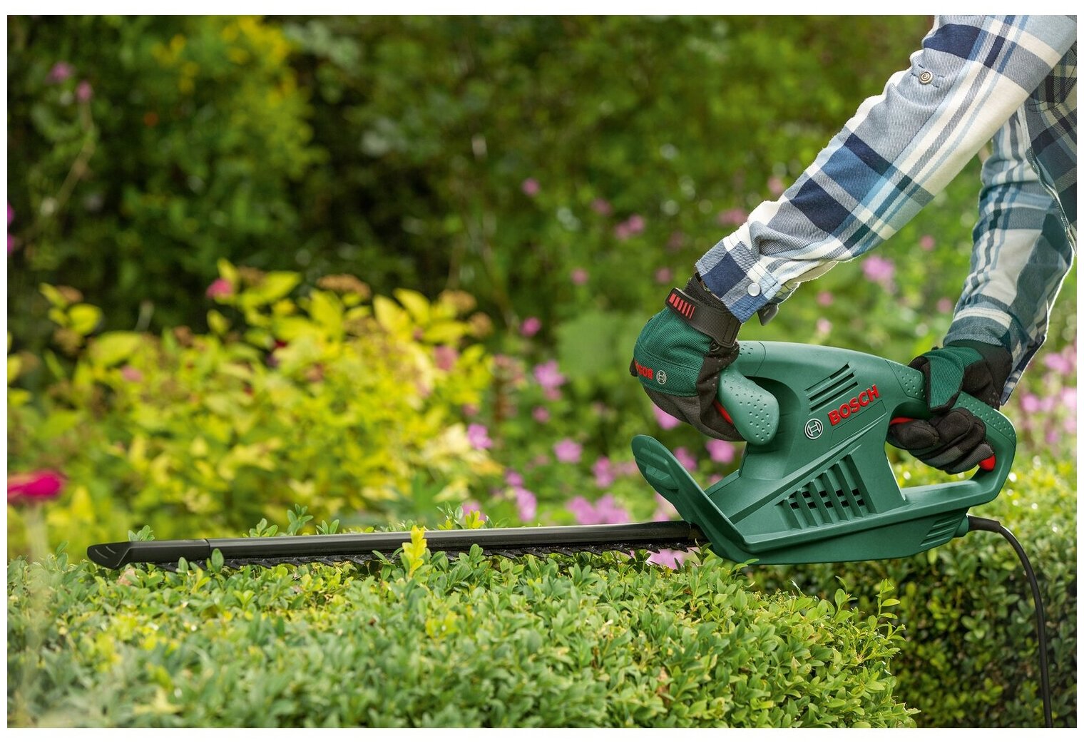 | Плюсы: | Проверить сейчас не могу. На дворе ноябрь. Но технику Bosch уважаю и доверяю ей. Думаю, что и этот кусторез не подведёт. |