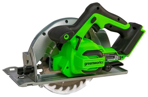 Дисковая пила Greenworks GD24CS, 24V, бесщеточная, 185х20мм, 4500 об/мин, рез 63мм, без АКБ и ЗУ (1500907)