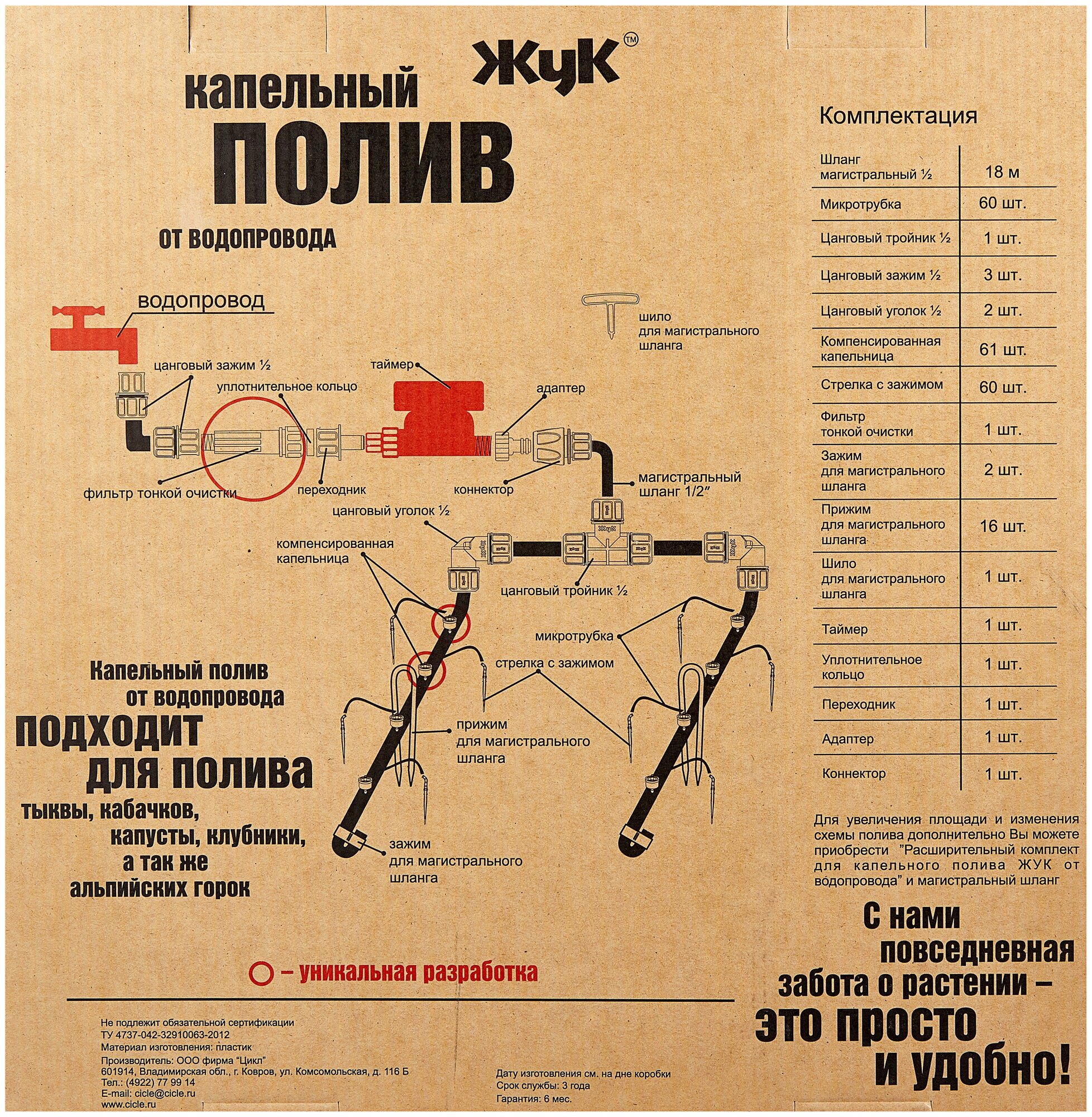 Жук Набор капельного полива от водопровода, длина шланга: 18 м, с таймером, кол-во растений: 60 шт.