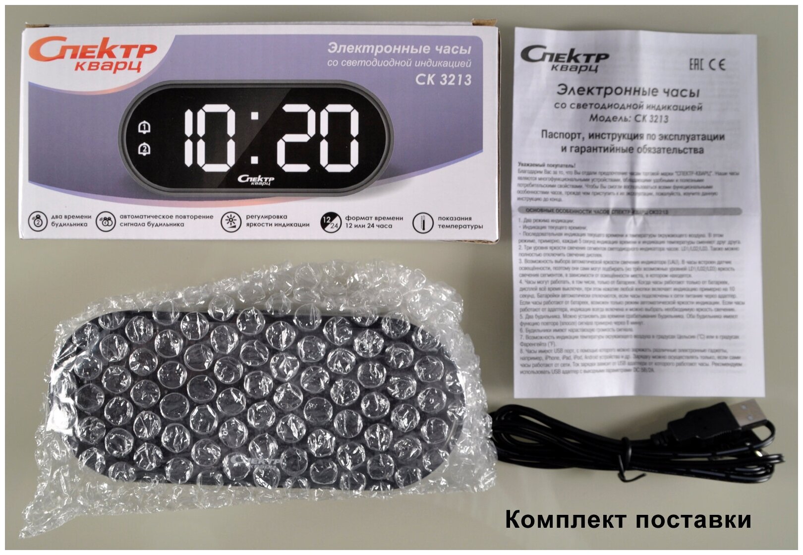 Часы Спектр СК3213-Ч-Б со светящимися цифрами интересное: