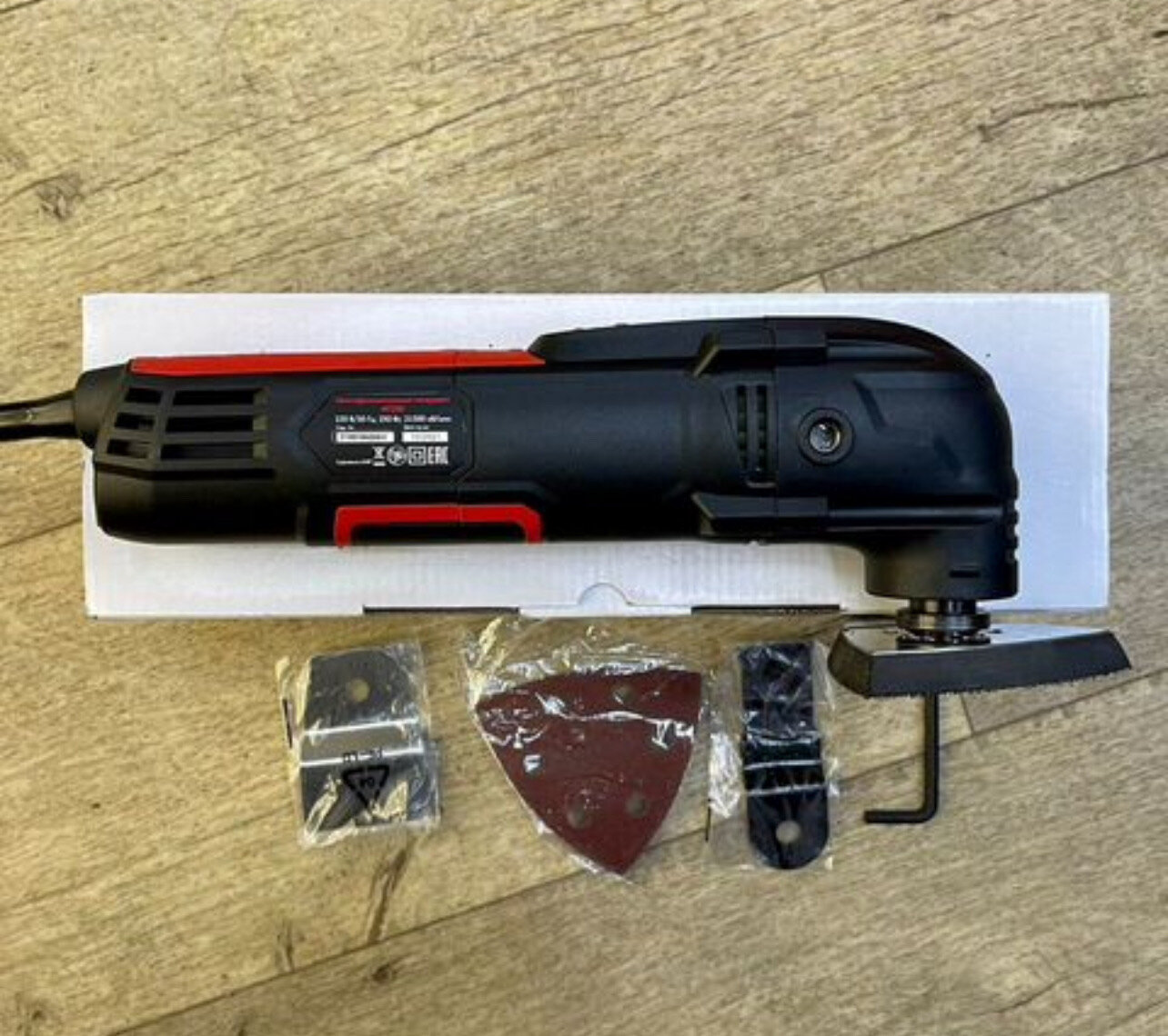 | Комплектация | прямое пильное полотно, жесткий скребок, шлифовальная подошва, шестигранный ключ |