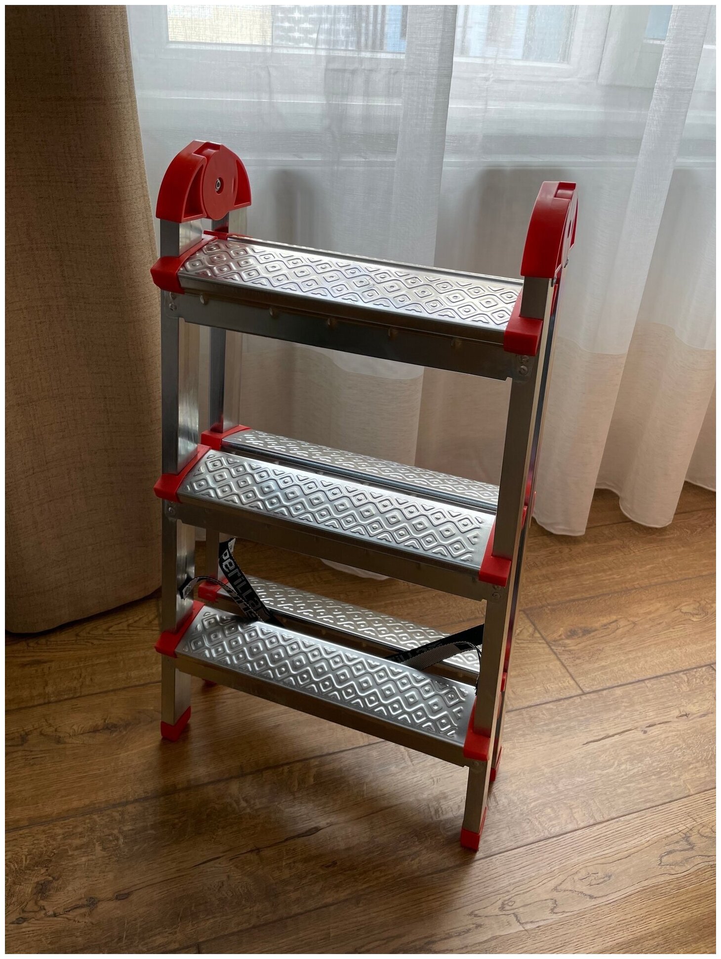 Стремянка ярус двусторонняя 3 ступ. сталь оцинк,h=73,5см,профиль 40*20мм,до 120кг,арт.122403 PERILLA