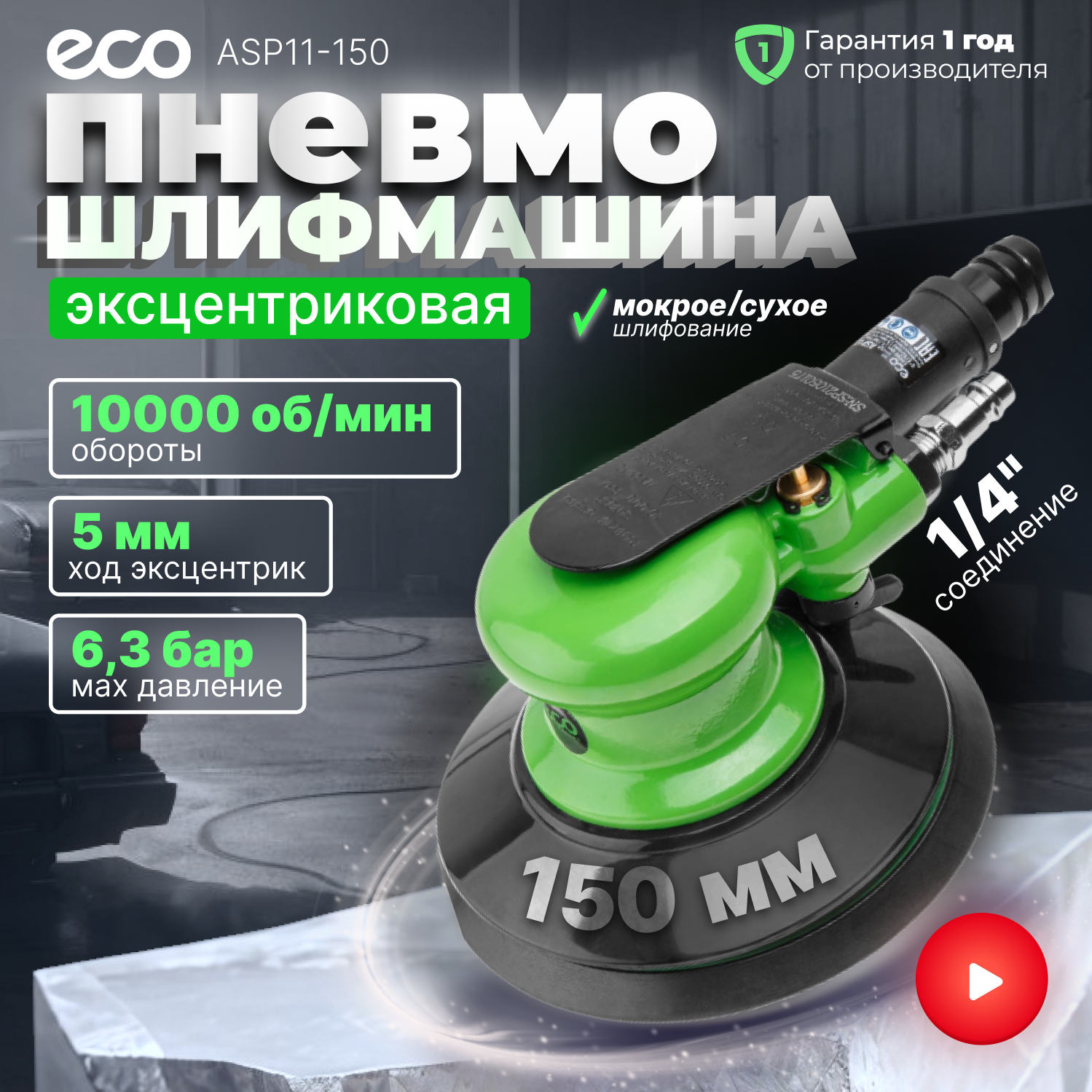 Эксцентриковая пневмошлифмашина ECO ASP12-150V