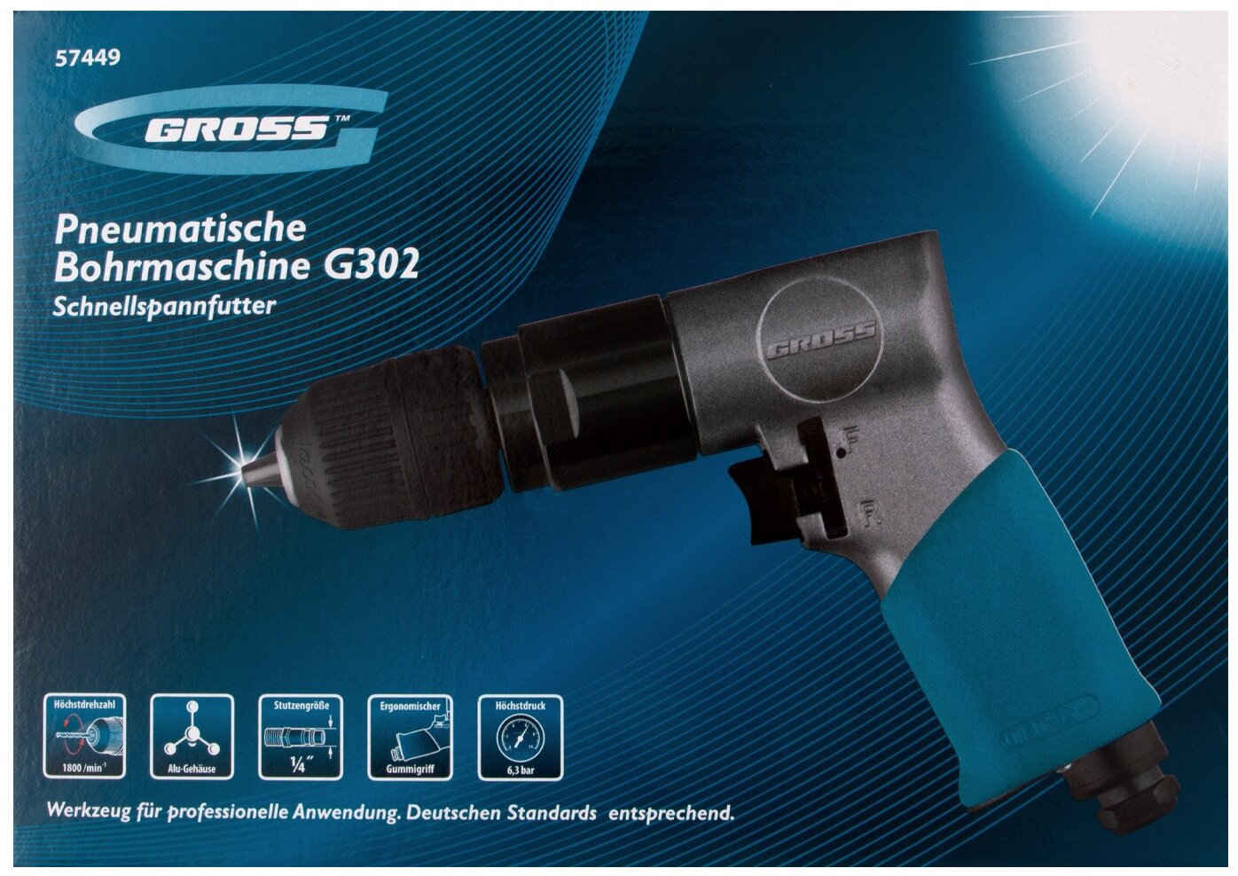 Дрель пневматическая G302, 3/8 дюйма, 1800 об/мин, патрон 10 мм GROSS 57449